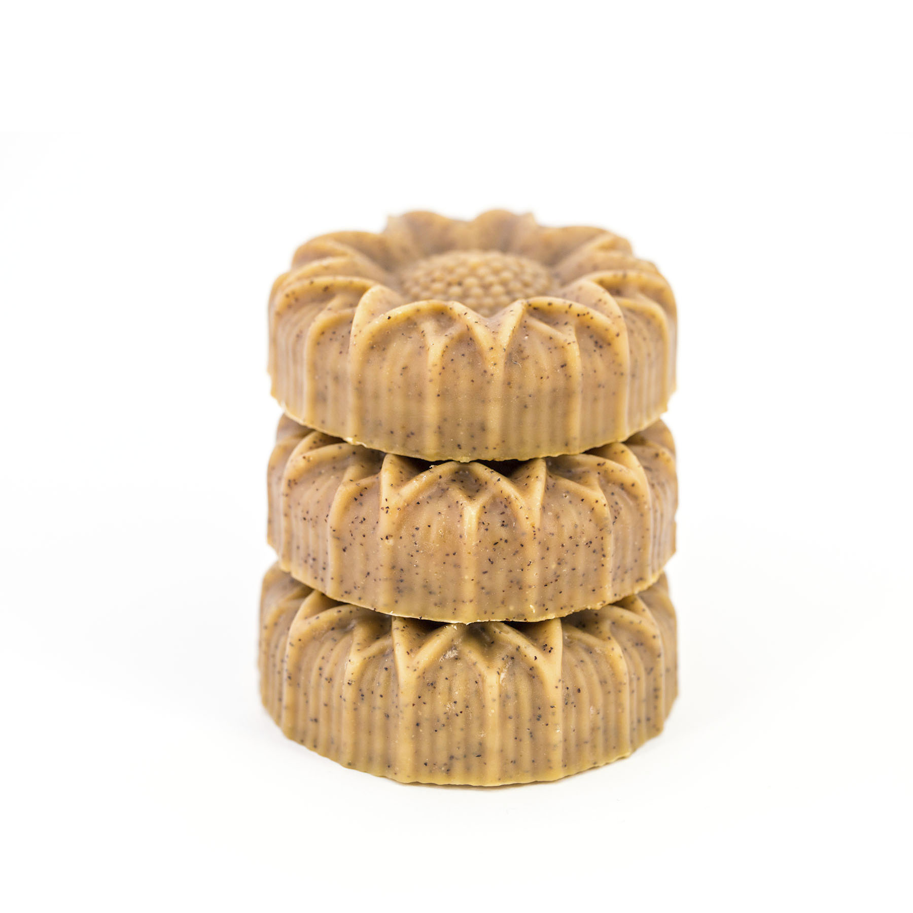 Ingredients: Sodium Cocoate, Sodium Olivate, Sodium Shea Butterate, Sodium Sunflowerate, Sodium Castorate, Beeswax, Glycerin, Honey, Prunus Armeniaca Seed Powder, Hydrolyzed Silk, Parfum, Kaolin, Capsicum Annuum Fruit Powder, Limonene*, Linalool*, Coumarin*, Eugenol*, Geraniol*