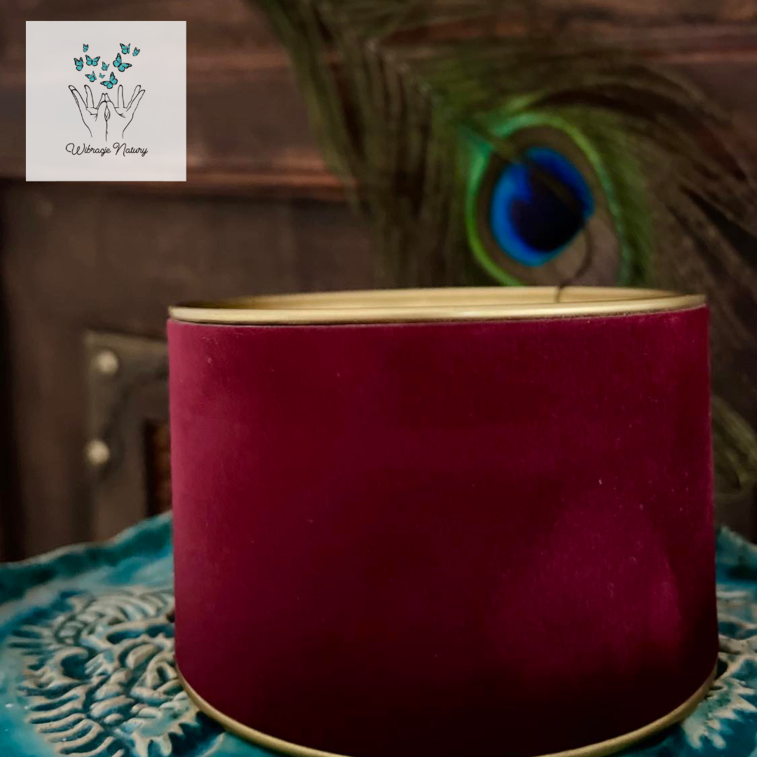 Zapakowana w ozdobną, welurową puszkę ze złotą przykrywką.